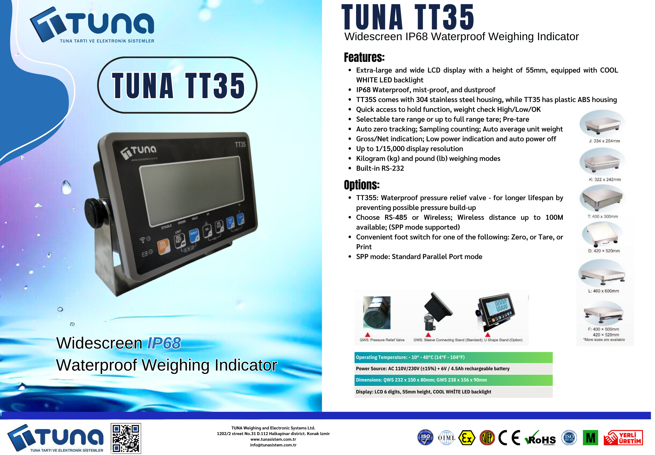 Yenilikçi ve güçlü teknolojimiz ile donattığımız yeni ürünümüz Tuna TT35 İndikatör, alanında fark yaratmaya hazır. Su geçirmez ve toz geçirmez özelliği, geniş ve net LCD ekranı, otomatik sıfır izleme gibi birçok özelliği ile işlemlerinizde kolaylık sağlar. Yeni nesil tartım deneyimine hazır mısınız?