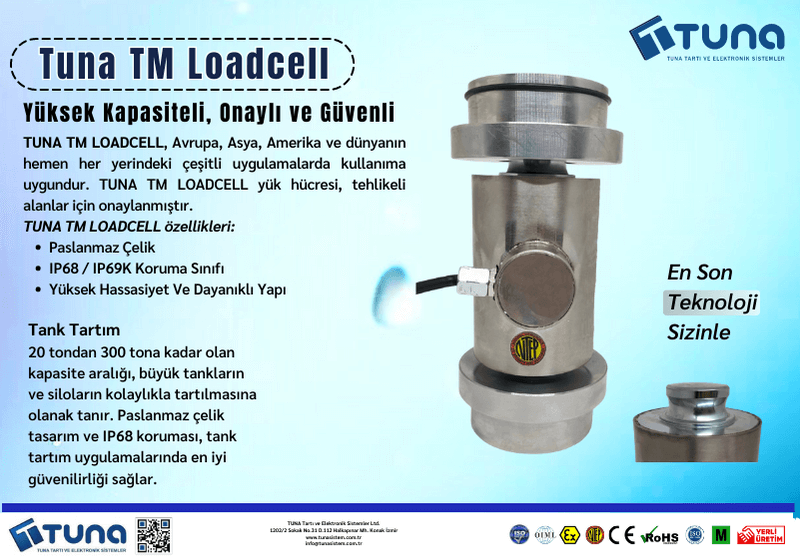 Türkiye'de yük hücresi teknolojisinin liderlerinden biri olan TUNA Tartı ve Elektronik, yepyeni ürünü TUNA TM LOADCELL'i sizlerle. Paslanmaz çelik yapısı, IP68/IP69K koruma sınıfıyla dikkat çeken bu yük hücresi, yüksek hassasiyeti ve dayanıklı yapısıyla öne çıkıyor.